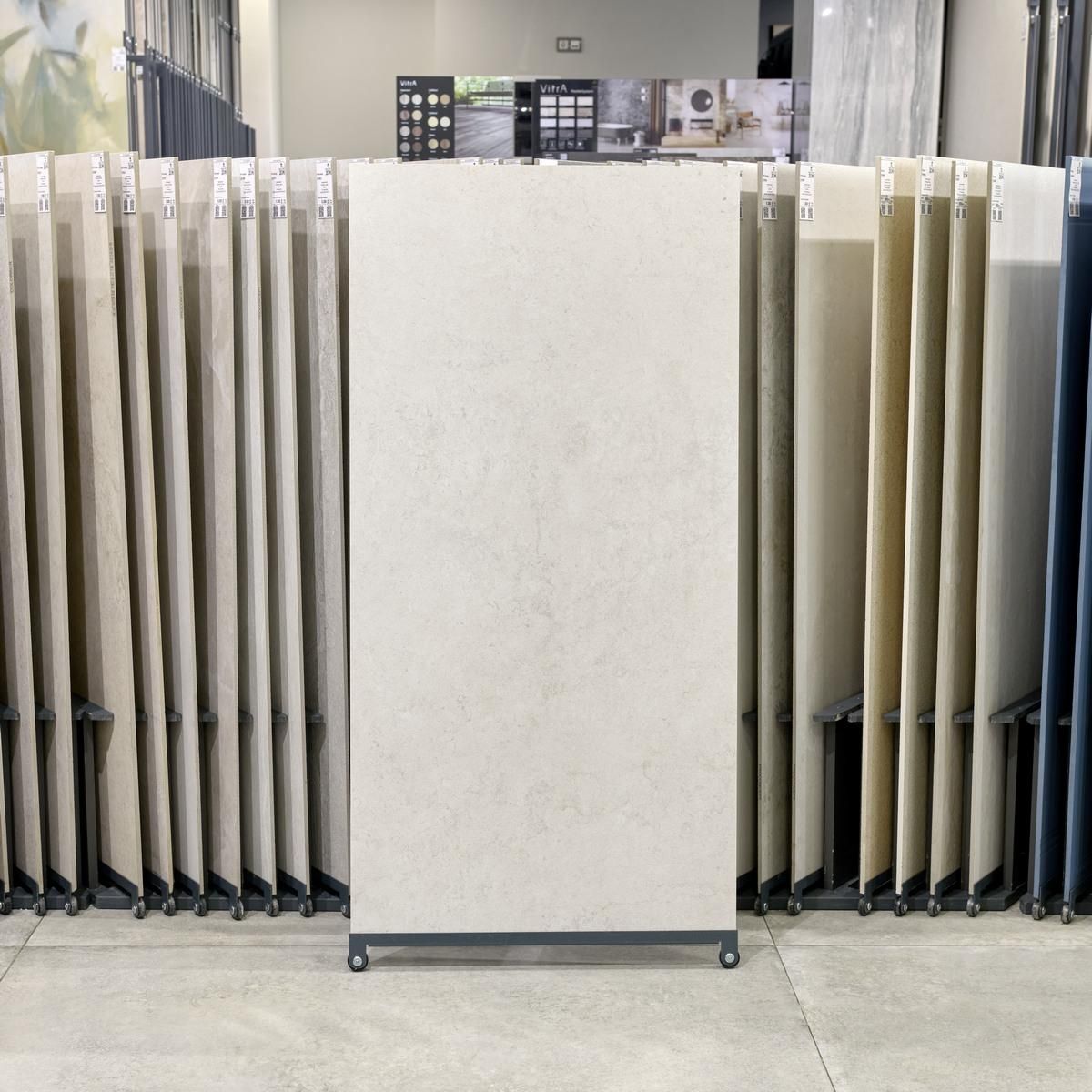 Материал имеет матовую поверхность, которая не только придаёт керамограниту эстетичный вид, но и обеспечивает практичность в эксплуатации. Размеры плитки составляют 59,5 см в длину и 119,2 см в ширину, что позволяет создавать разнообразные дизайнерские решения.