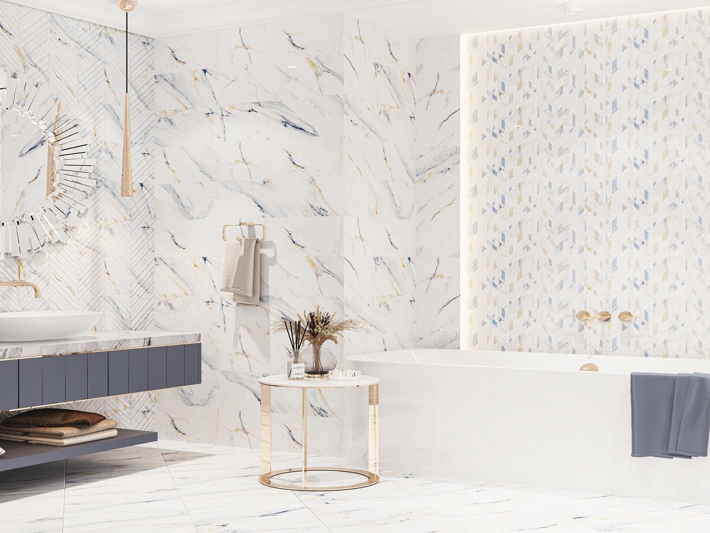 Коллекция Calacatta Fantasy отличается элегантным и современным дизайном, который подойдёт для создания стильных интерьеров. Глянцевая поверхность плитки придаёт пространству лёгкость и визуально увеличивает его.