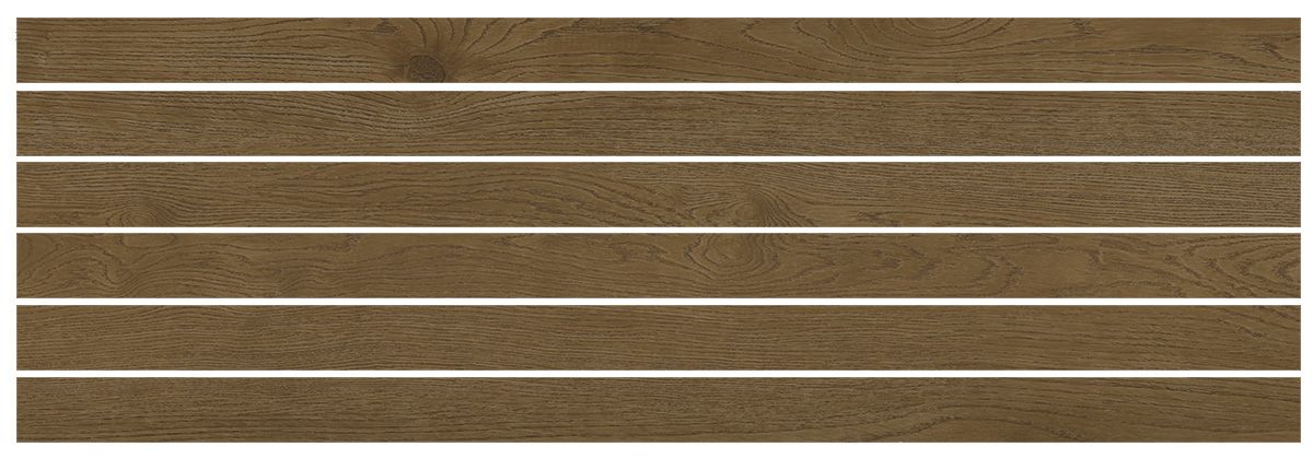 Керамогранит имеет размер 30x90 см и выполнен в матовом коричневом цвете, что придаёт поверхности глубину и объём. Материал устойчив к износу, влаге и перепадам температур, что делает его идеальным для использования в жилых и коммерческих помещениях.