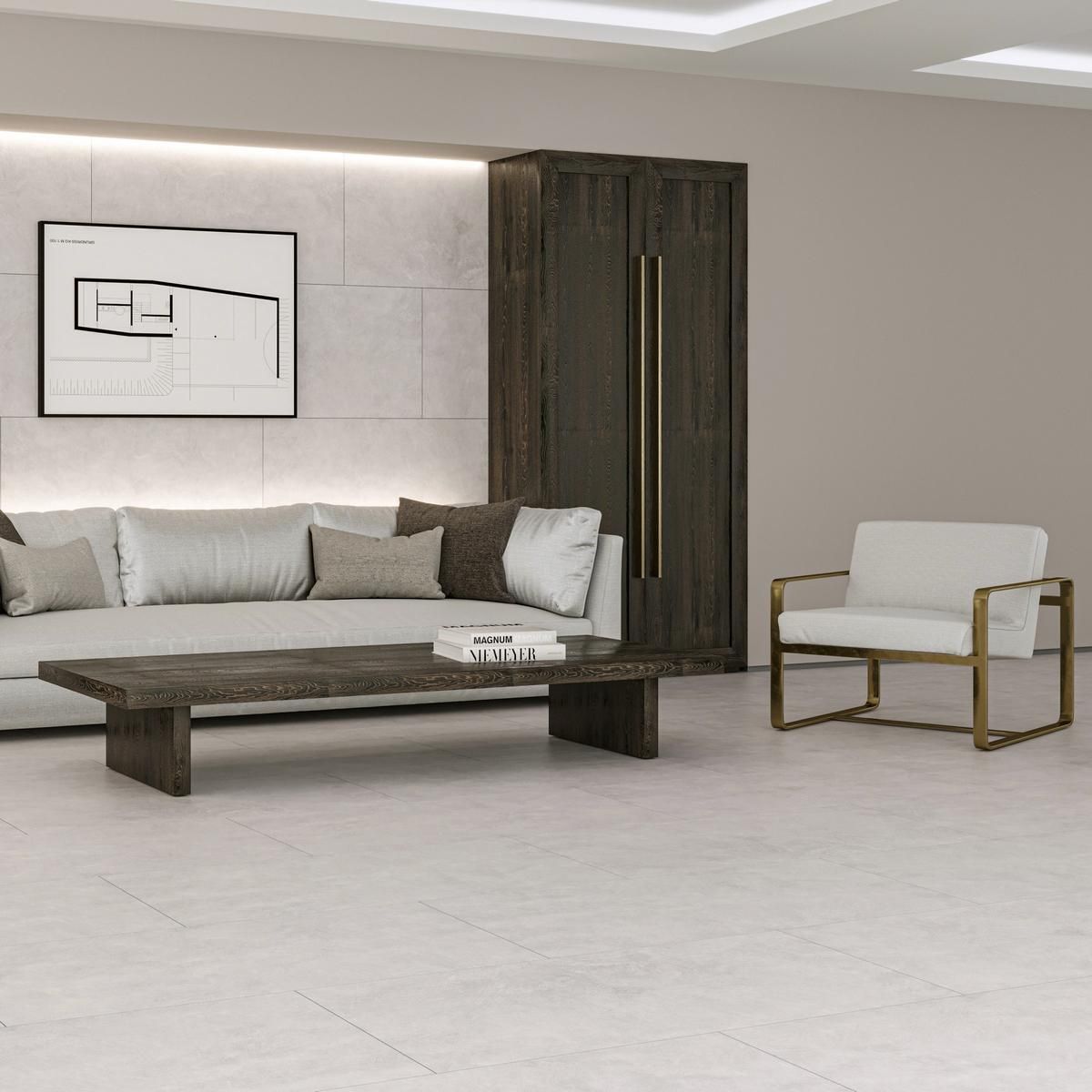 Керамогранит имеет размер 60x120 см и матовую поверхность, что придаёт ему особый шарм и элегантность. Белый цвет керамогранита гармонично сочетается с различными стилями интерьера и экстерьера, создавая ощущение простора и света.