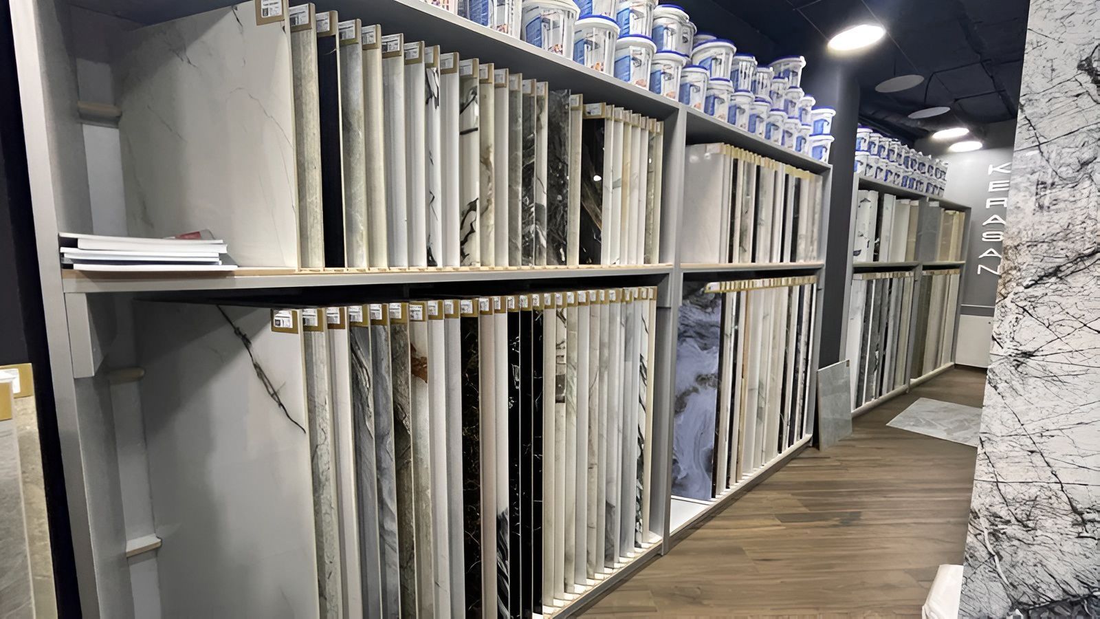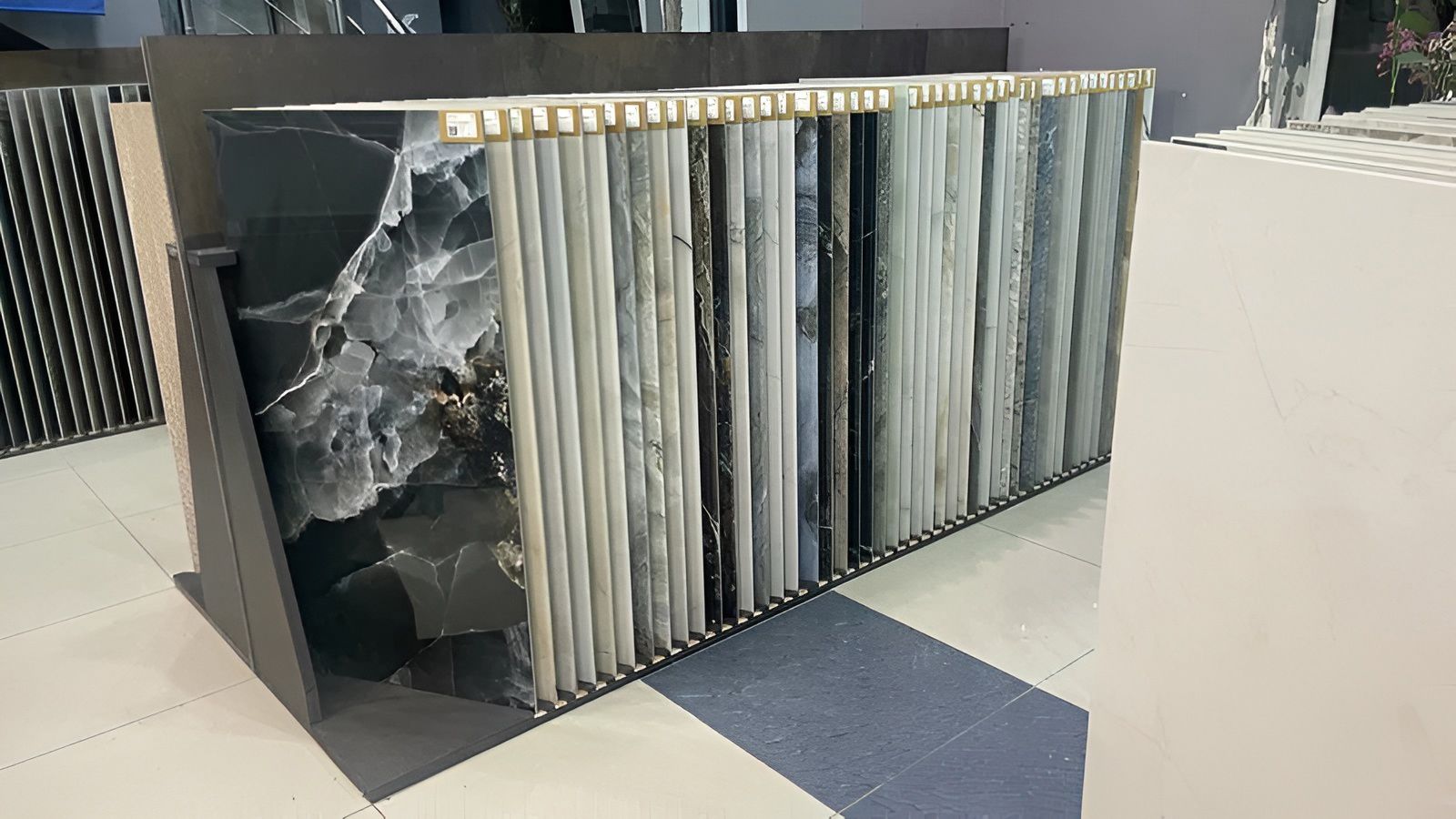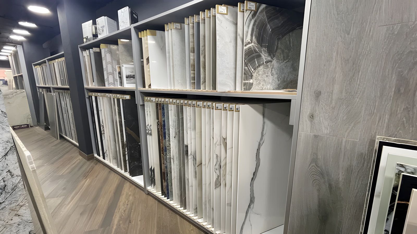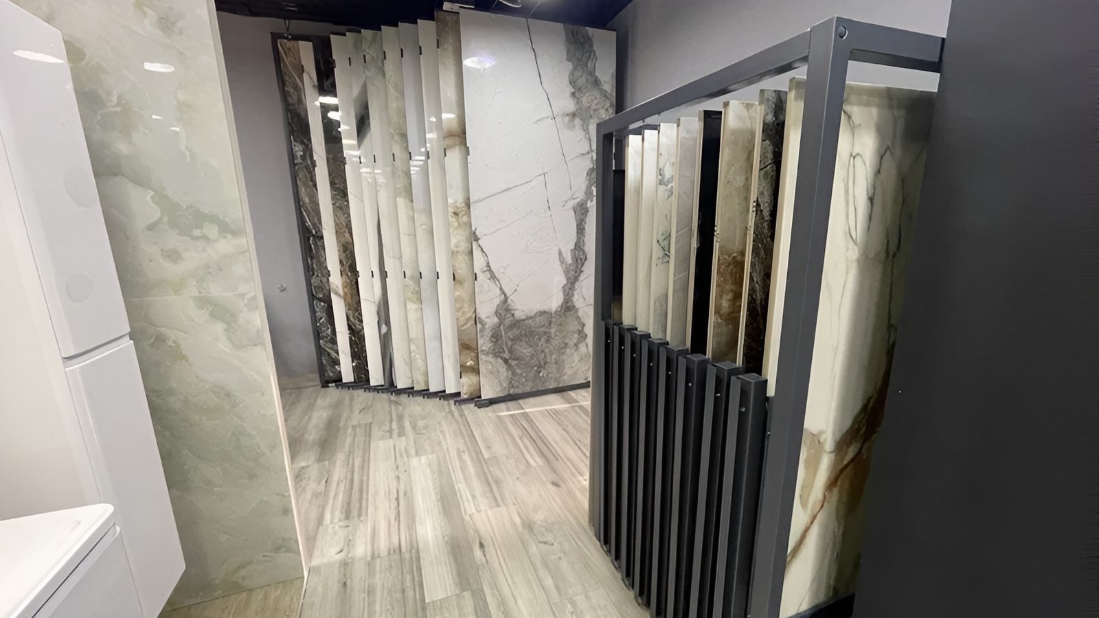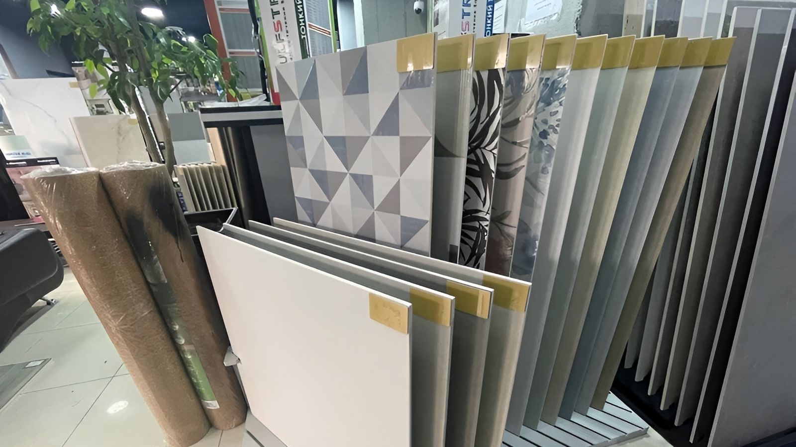 В салоне представлены коллекции керамогранита от бренда Neodom. Каждая коллекция в разных форматах и цветовой палитре. К услугам покупателей, помимо крупноформатного размера плитки 120x280 см, выставлены образцы наиболее популярных размеров 60x120 и 60x60 см.