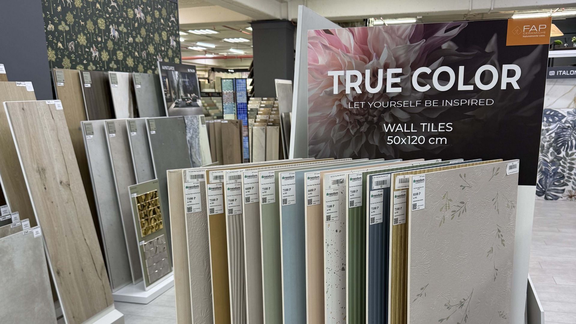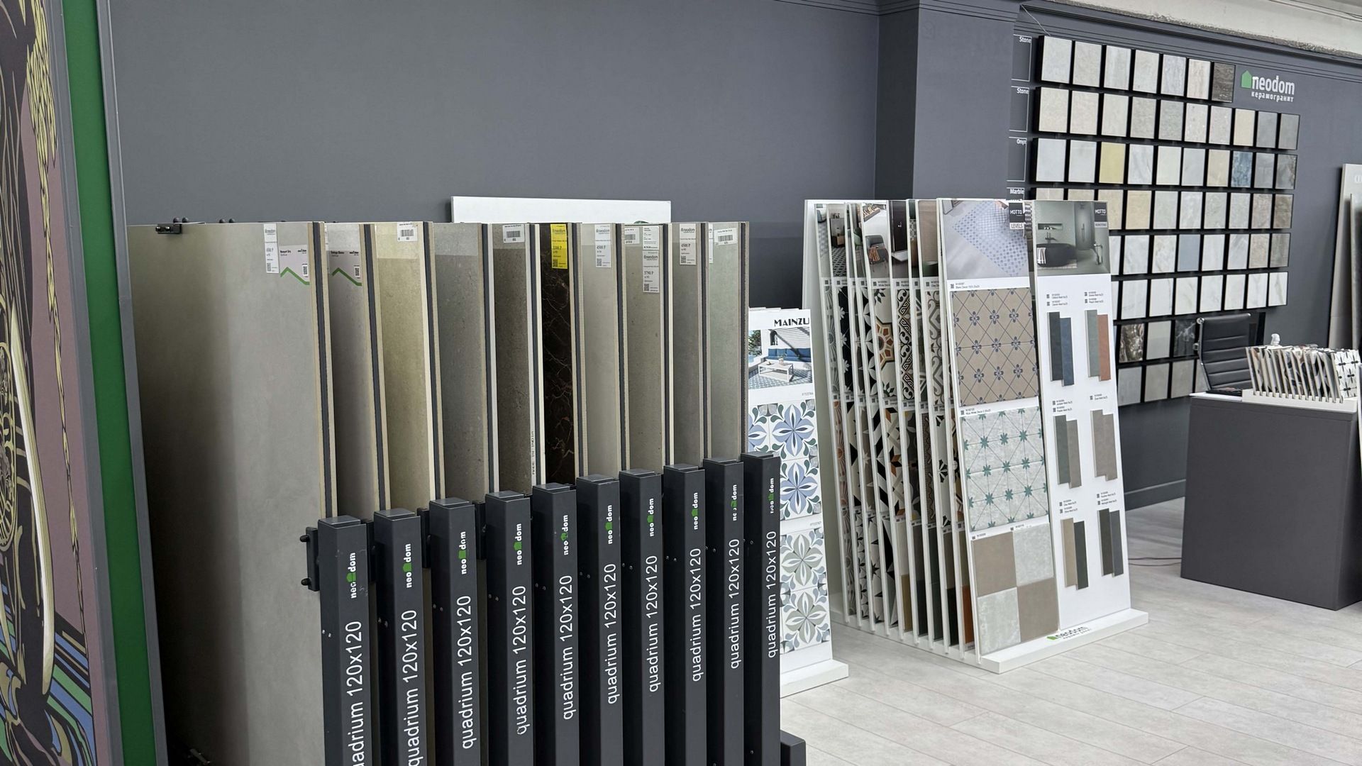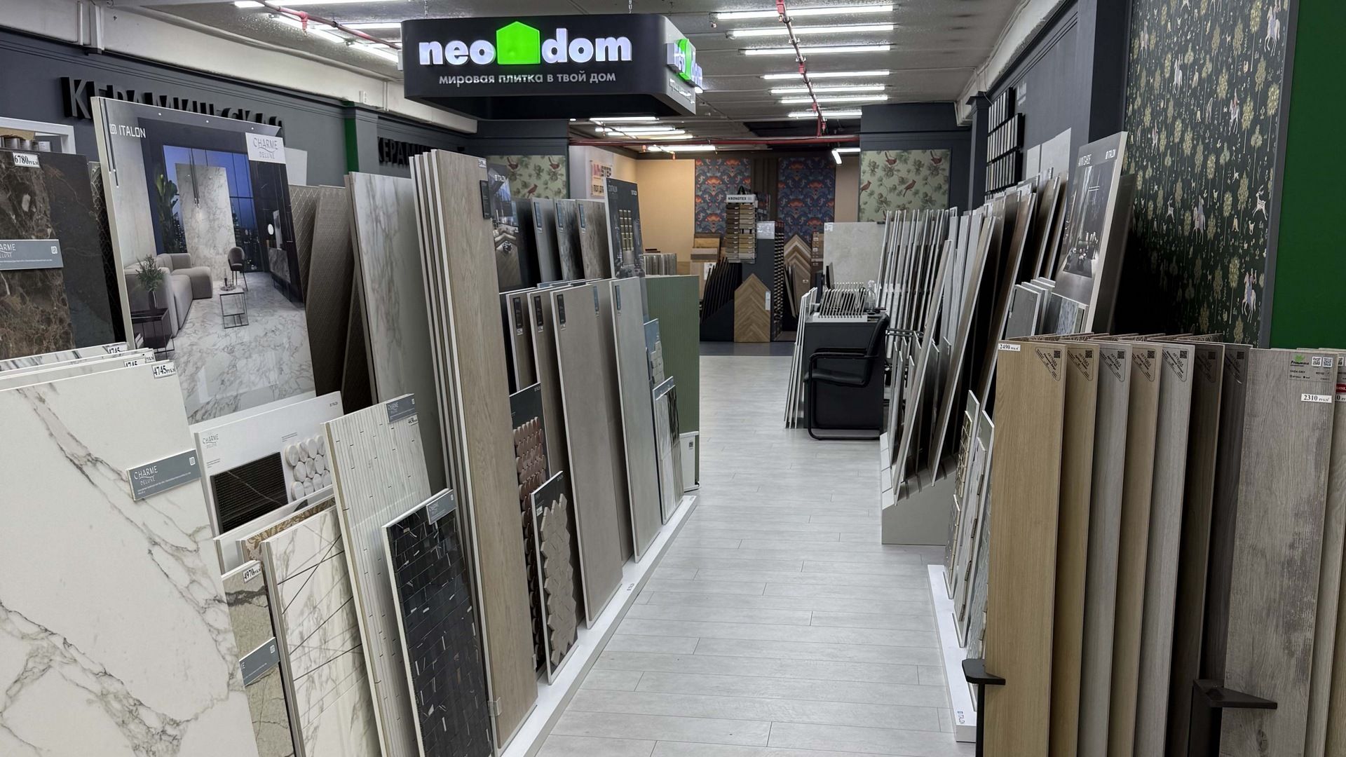 Специализированный салон по продаже керамической плитки, обоев. Бесплатный подбор, дизайн помещений. Специальные условия по работе с дизайнерами, архитекторами. На торговой площади 400 м2 представлены выставочные образцы всех известных брендов: Neodom, Vitra, Керранова, Florim, Fap, Living Ceramica, Mainzu, Colorker, Stn и др.